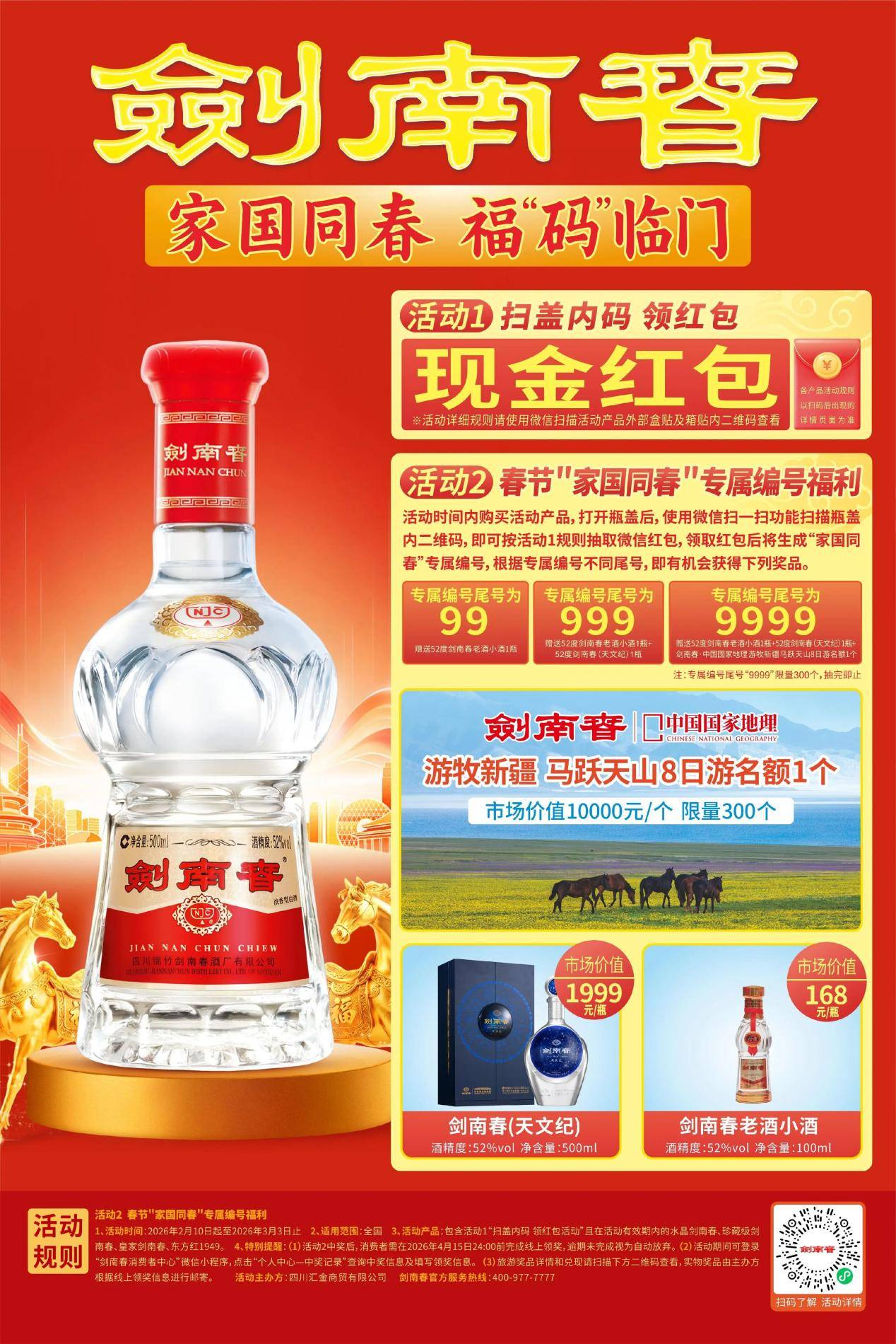 通过社交分享数据逃踪功能,及时统计分享量、点击量,精准阐发径取用户参取行为,实现结果数字化管控。勾当无需巨额告白投入,仅通过一瓶一码的简单设想,撬动全平易近参取热情,让消费者自动成为品牌载体。酒水行业是春节营销焦点赛道,聚焦宴席、礼物两大场景,马年CNY物码营销沉点处理终端动销、渠道窜货、宴席引流三大痛点,依托一物一码实现“开瓶扫码(消费者)+箱码核销(渠道)+宴席报备(终端)”数字化联动,兼顾消费者激励取渠道管控,鞭策品牌从保守渠道营销向数字化全链营销转型。剑南春紧扣春节宴席焦点场景,推出“家国同春,福马临门”一物一码专项勾当,依托瓶码+盒码+箱码的三码联系关系手艺,打通品牌、渠道、消费者全链,实现宴席营销取渠道管控双沉冲破。勾当推出“一瓶十扫”模式,每瓶剑南春宴席用酒可支撑十位宾客同时扫码抽,品涵盖现金红包、专属礼物,既提拔宴席趣味性,也扩大勾当笼盖面;同时搭建消费者、门店、导购分利机制,通过数字化分利激发终端渠道积极性。