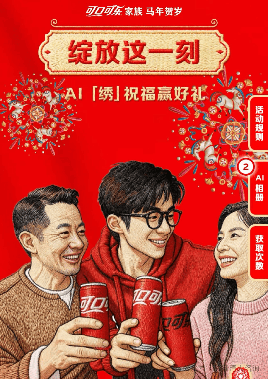 华东区域同步推出开箱扫码勾当,终端门店开箱扫码可获立即现金红包,累计扫码数量可解锁阶梯励,激发门店推货积极性。背后依托一物一码的LBS定位核销手艺,及时逃踪扫码区域取终端门店消息,无效规避窜货风险,实现渠道数字化管控;同时通过会员绑定沉淀消费数据,精准阐发用户偏好,为后续复购指导供给支持。可口可乐以“把乐带回家——AI刺绣贺年”为从题,将一物一码取AI手艺、社交深度融合,打制全平易近参取的数字化营销勾当。马年限制烟花罐罐身印有独一二维码,消费者扫描后可上传照片或视频,生成带有马年元素取刺绣气概的个性化贺年动画,支撑自定义祝愿语并一键分享至社交平台。