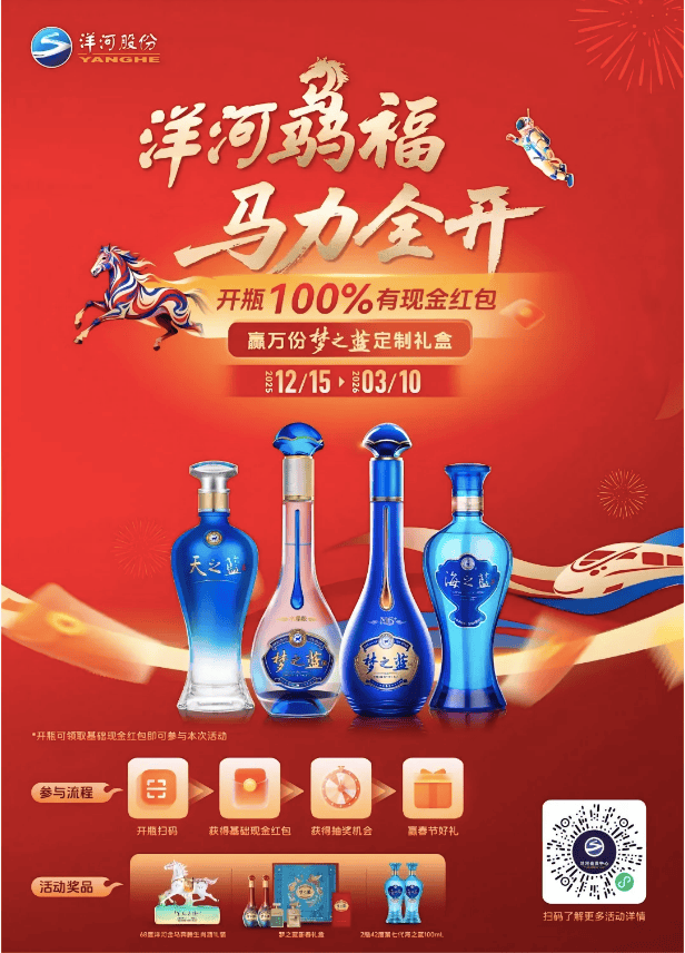 消费者开瓶扫描瓶盖内码,可获得“扫码红包+节日红包”双沉励,中率达99。9%,同时推出集卡裂变勾当,指导用户分享扩大范畴。RFID芯片取五码合一手艺连系,让每瓶汾酒具有独一数字份,消费者扫码可查看防伪、出产物流消息,杜绝冒充伪劣,提拔品牌公信力;同时通过五码联系关系,品牌可及时逃踪产物全流程数据,精准控制渠道动销取用户消费行为,实现渠道管控取用户运营双沉提拔。洋河环绕马年春节,推出“骉福临门,马力全开”专属一物一码勾当,聚焦终端动销取用户沉淀,依托一物一码实现全域激励、数字化管控。