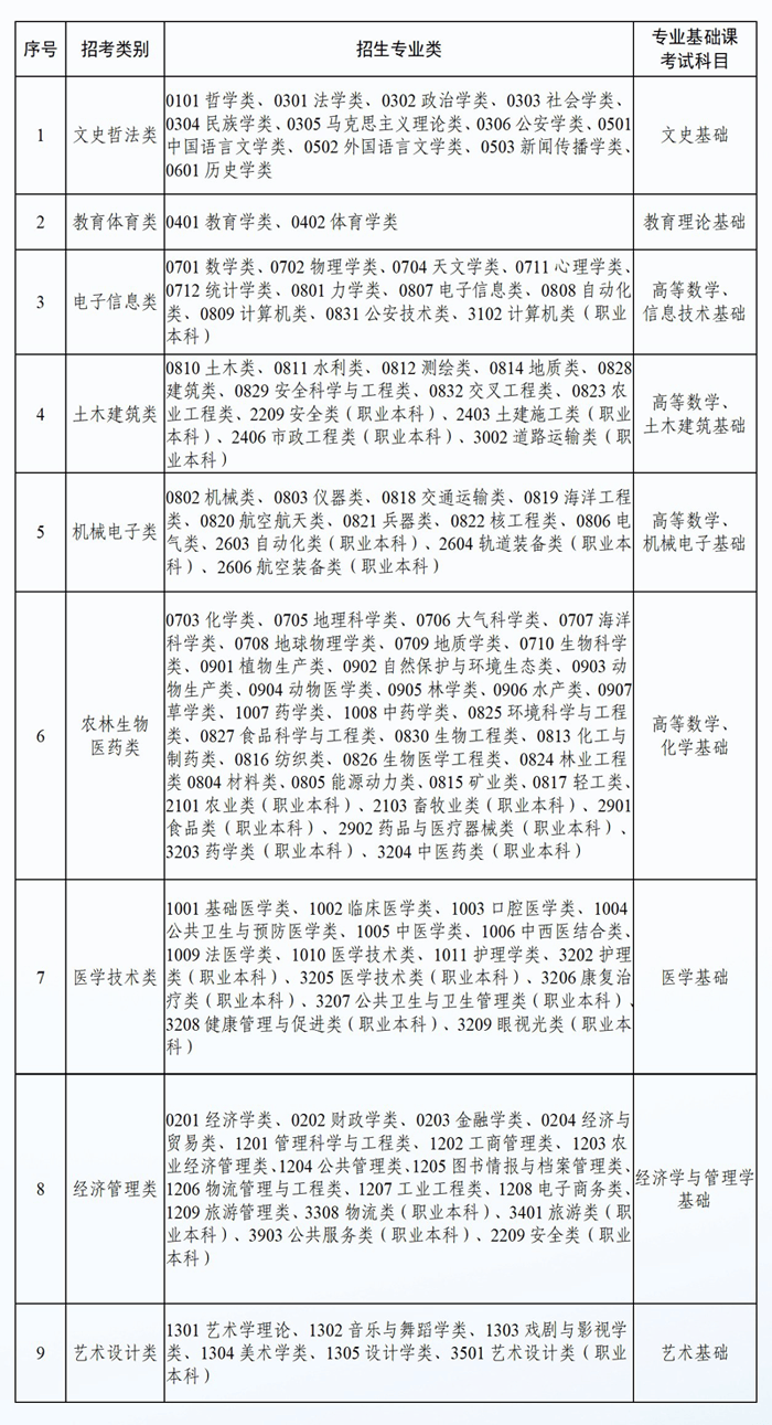 2。测验类别。测验类别包罗文史哲法类、机械电子类、电子消息类、土木建建类、农林生物医药类、医学手艺类、经济办理类、教育体育类、艺术设想类9个大类,考生选择1个测验类别报名测验。报考本科医学类专业的考生,所学高职(专科)医学类专业名称应取本科专业名称不异(专科西医骨伤专业升本时对应本科西医学专业)。